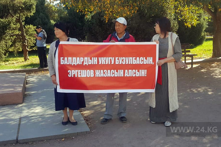 Участники протеста требуют восстановить их на работе и привлечь к ответственности директора РУОР Кадырбека Эргешова.