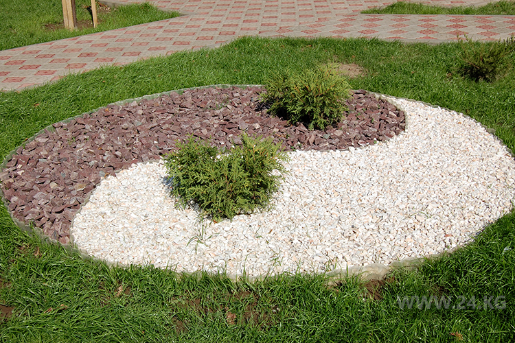 При благоустройстве аллеи использовали декоративные камни, которые выложены в виде символа гармонии и единства инь и ян.