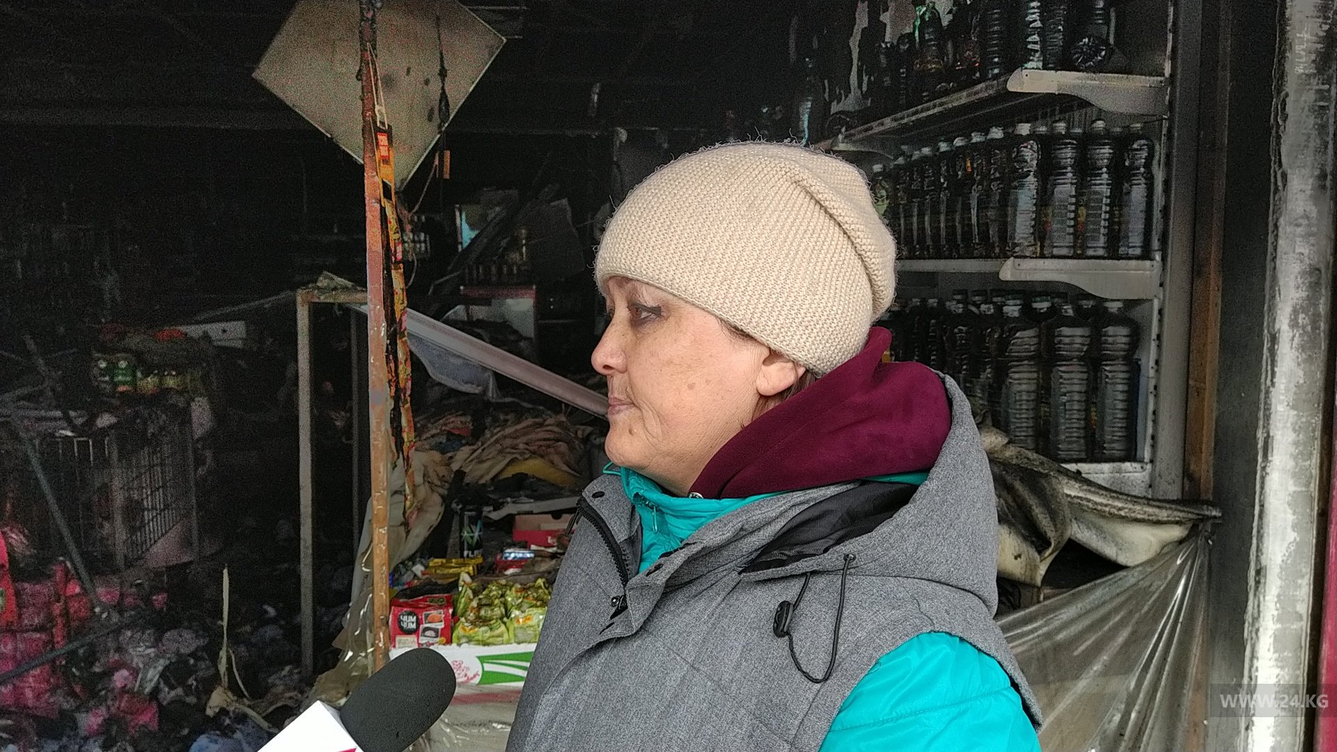 «Ночью мне позвонил торговый агент, сказал, что в районе наших рядов что-то горит. Мы живем рядом. Быстро пришли. Здесь все горело. Все оцепили милиционеры и пожарные. Никого не подпускали. К нашим торговым точкам нас допустили лишь в пять часов утра, когда все потушили. У нас мелкооптовый магазин. Все сгорело дотла. Одних только продуктов на $20 тысяч», — говорит одна из пострадавших Эльмира Кочорова.