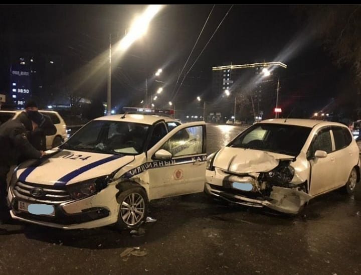По ее данным, 9 февраля примерно в 1.20 на пересечении улиц Масалиева и Раззакова автомашина Honda Fit столкнулась с машиной Патрульной службы Lada Granta.