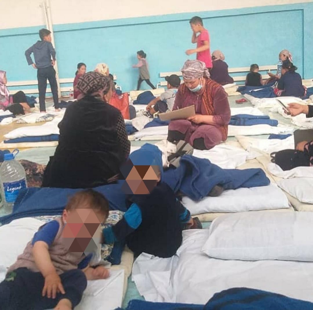 Пенсионерка Алия Кайназарова вечером 29 апреля в 17.00 выбежала из дома в одном легком платье и до сих пор не может вернуться в родное село.«Когда начали стрелять в соседних селах, мы бежали в сторону гор. До двух ночи прятались там. Я в одном легком платье, было очень холодно. Потом ночью нас забрали и привезли в Исфану. Здесь расположились в здании школы. Нас кормят и заботятся», — рассказывает женщина.