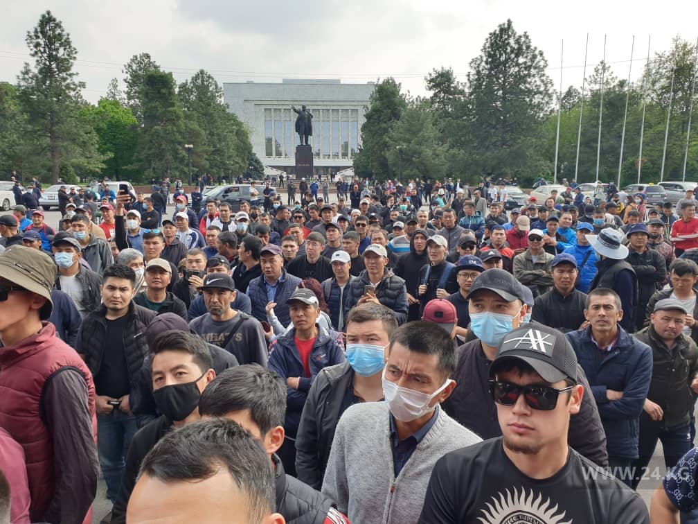 Число митингующих у Дома правительства в Бишкеке выросло до 500 человек. Представители разных регионов Кыргызстана требуют, чтобы к ним вышли представители власти и объяснили, почему военным не дают приказ защищать мирное население.