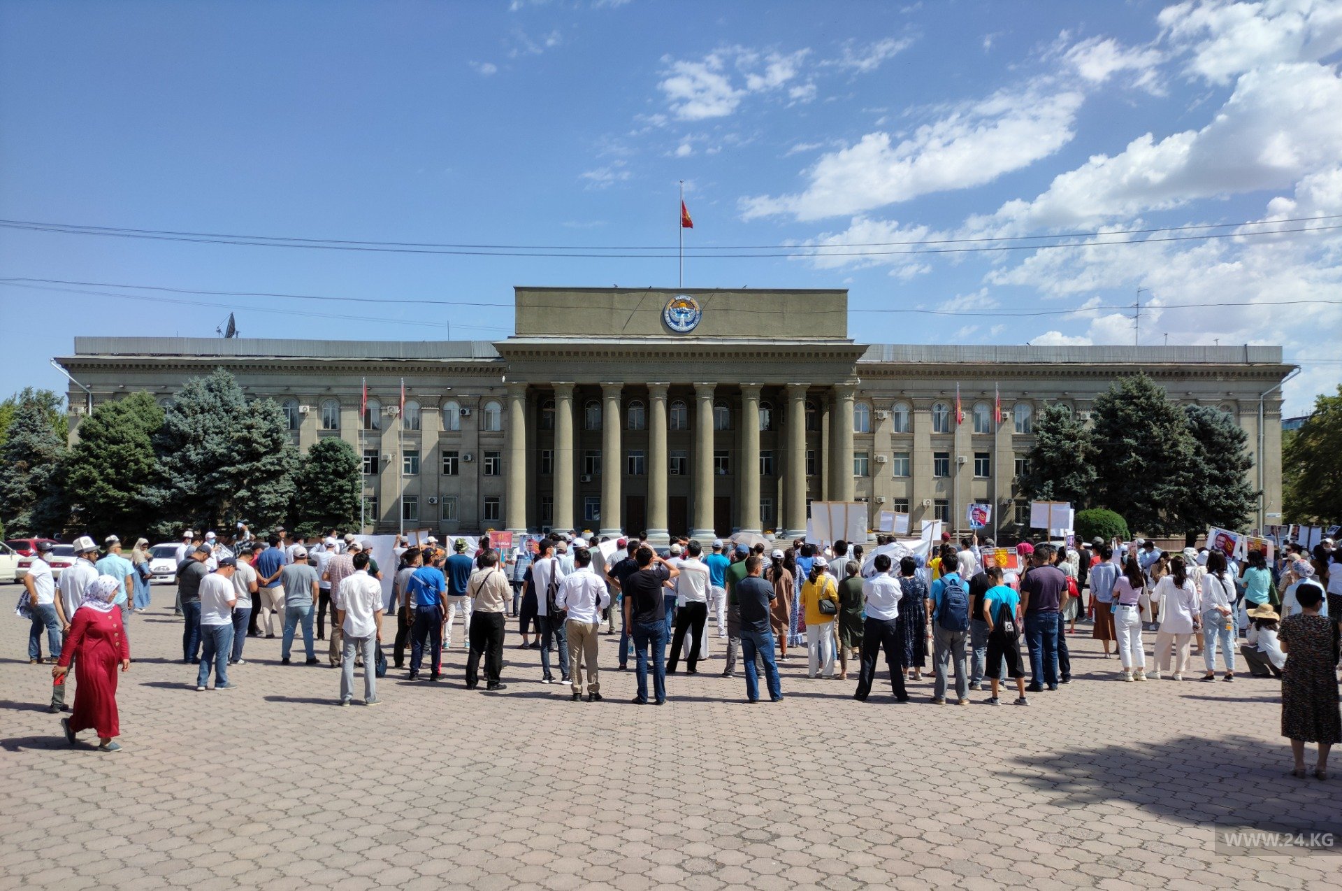 В Бишкеке возле Дома правительства вновь собрались сторонники исчезнувшего президента международного образовательного учреждения «Сапат».