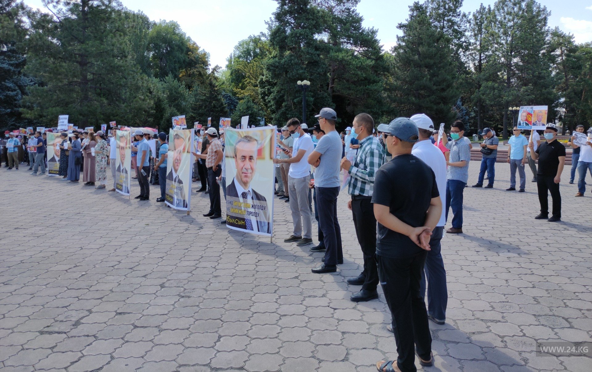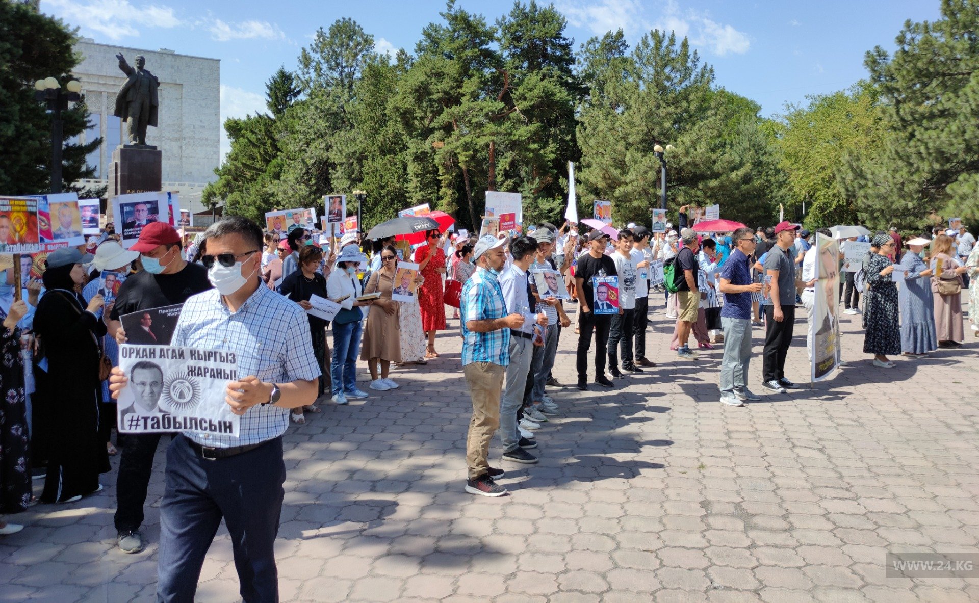 Около 200 человек с плакатами и транспарантами требуют у властей представить им информацию о поисках кыргызстанца. Митингующие также просят президента Садыра Жапарова держать вопрос под личным контролем.