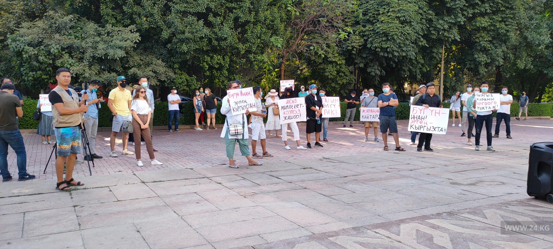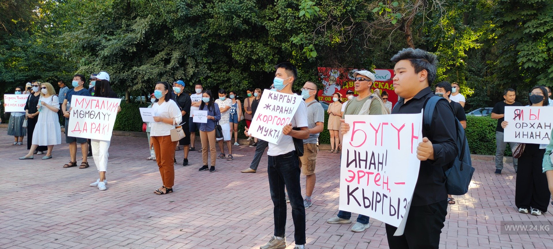 Акция началась возле железнодорожного вокзала. Сюда вышли более 50 человек. Они держат плакаты «Я/Мы Орхан Инанды», «Сегодня Инанды, завтра Кыргызстан».