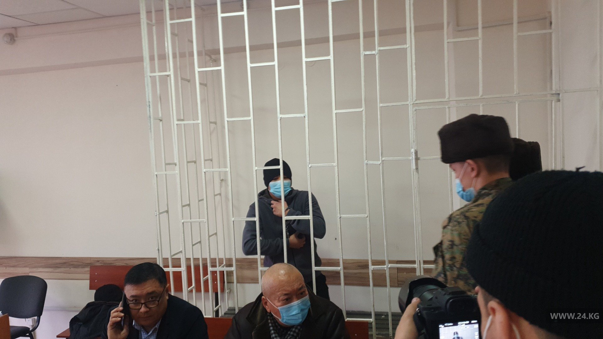 В зал суда под конвоем доставлен обвиняемый Жакупбек Дуулат уулу, остальные трое находятся под домашним арестом. С учетом того, что все подсудимые обвиняются в тяжких преступлениях, суд отложил заседание.