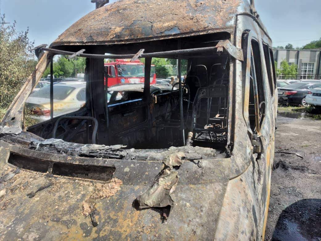 Для тушения отправили один пожарный расчет. Сгорели бусик Mercedes-Benz Sprinter, KIA, Ford Focus и Honda Accord.