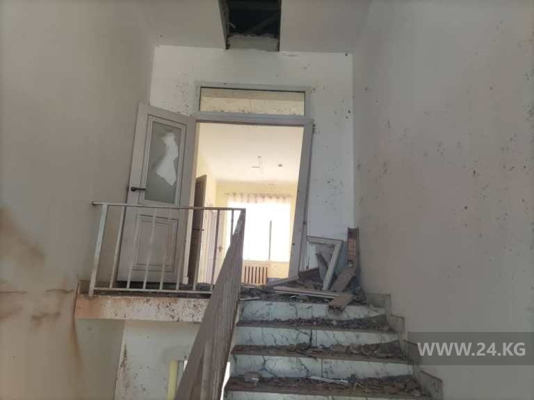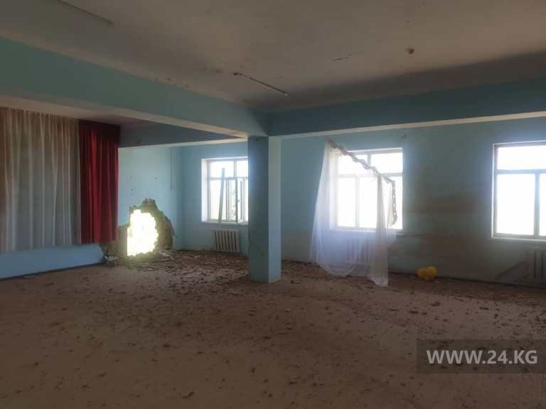 В селе Максат Лейлекского района полностью разрушены школа и детский сад. Из минометов обстреляна мечеть, разрушен ее купол.
