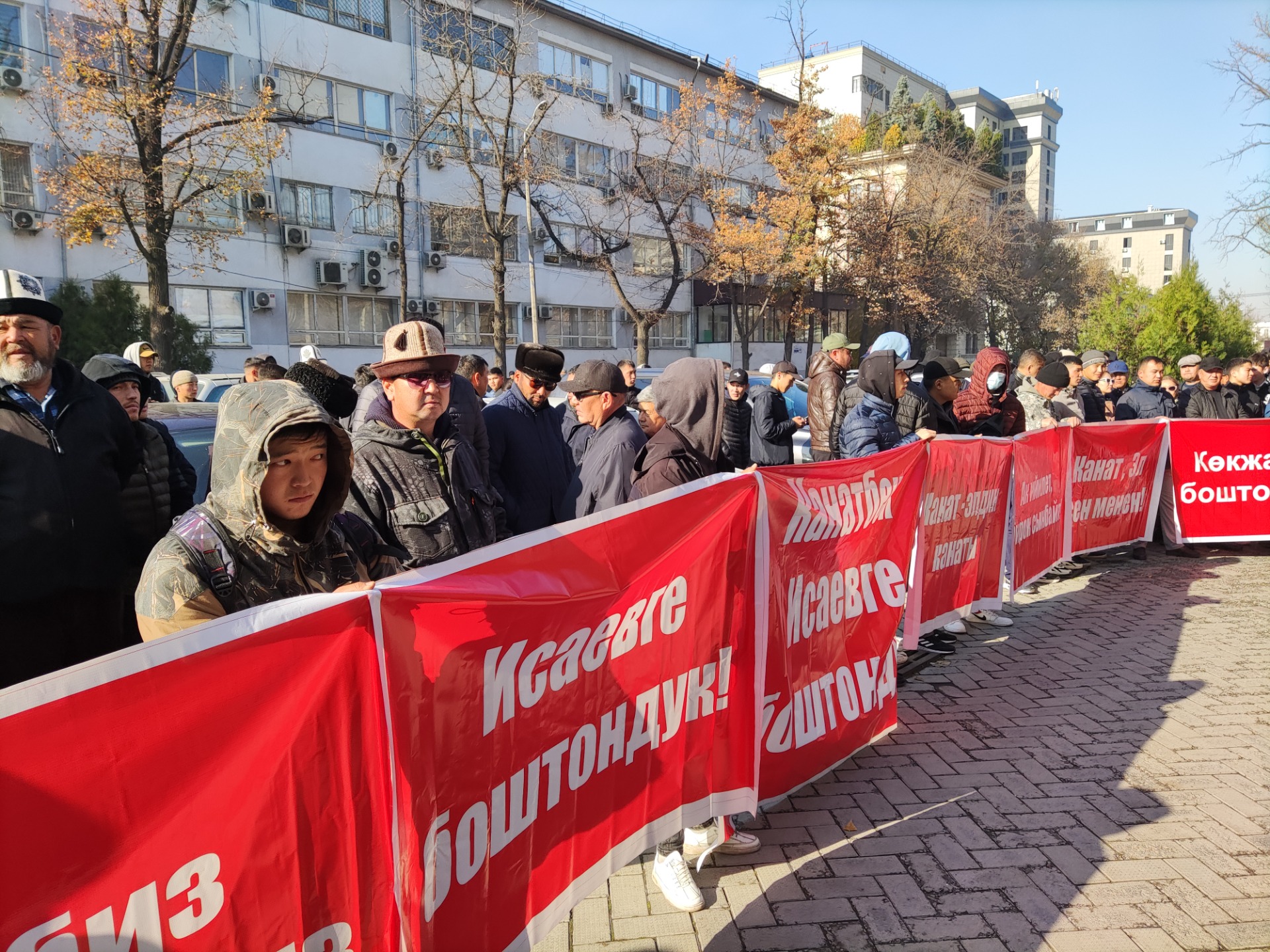 Возле Бишкекского городского суда проходит митинг в поддержку экс-депутата парламента Каната Исаева.