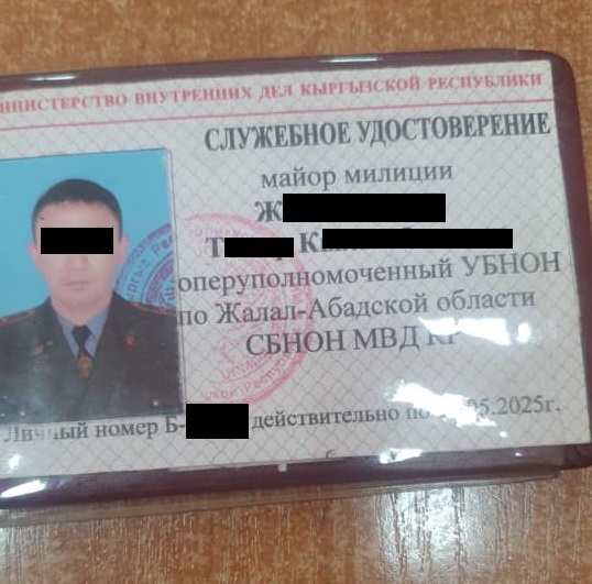 Старший оперуполномоченный ОУР Узгенского РОВД старший лейтенант милиции А.Н.Б., сотрудники УБНОН по Джалал-Абадской области, майор милиции Ж.Т.К. и капитан милиции М.С.Ж. 30 апреля 2023 года посредством фиктивных оперативно-следственных мероприятий, задержания и допроса за положительное решение вопроса в пользу задержанных получили от трех граждан 250 тысяч сомов.