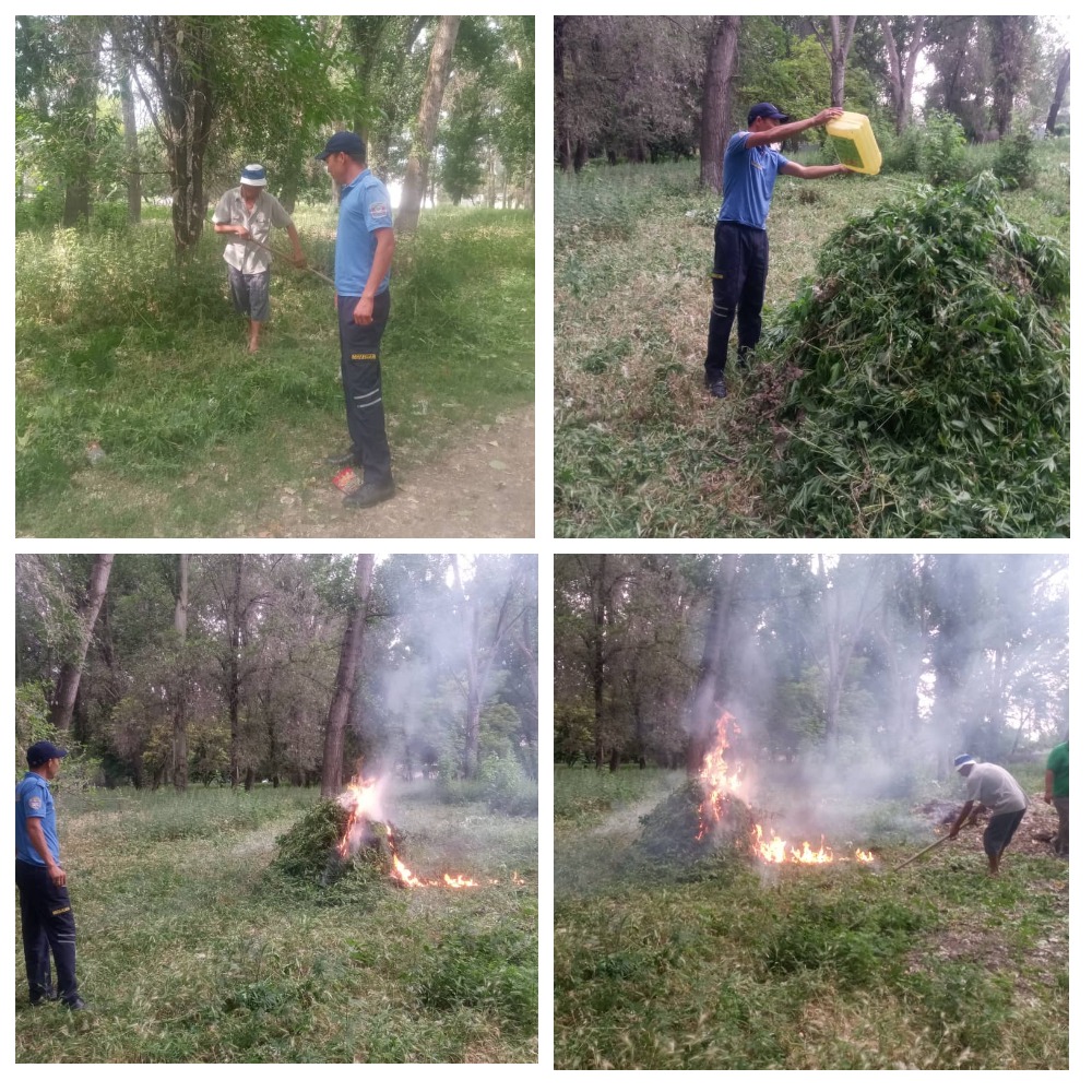 Отмечается, что в рамках рейда «Кара куурай» скошено и сожжено более 500 килограммов конопли.