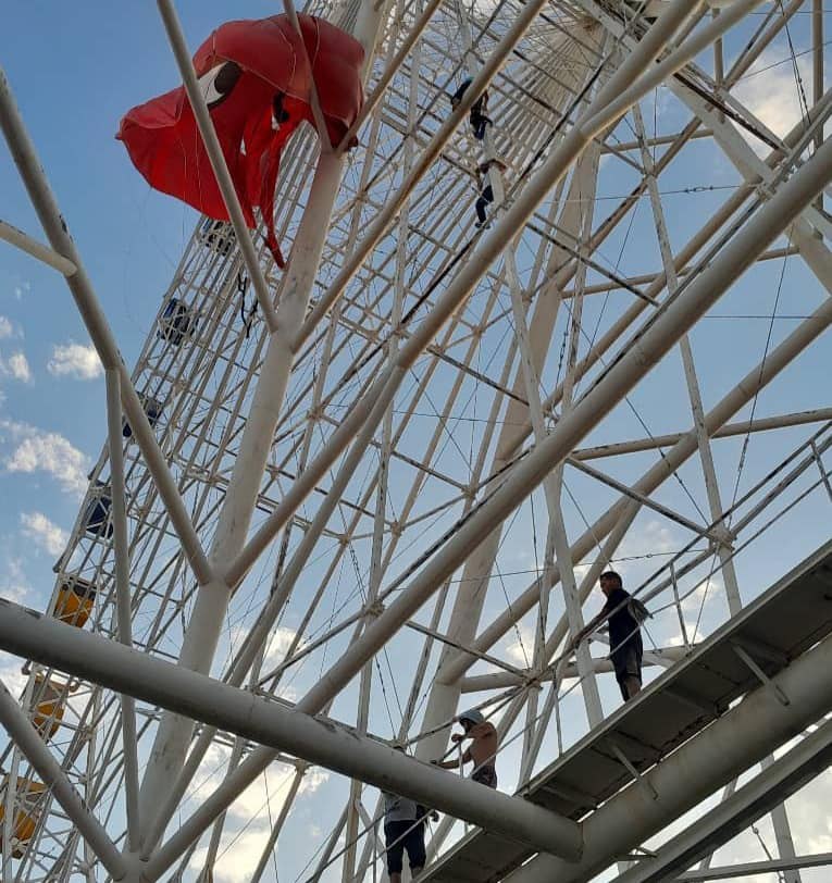 Его заметили сотрудники службы по охране общественной безопасности. Бойцы отряда специальных операций МВД приказали остановить работу колеса обозрения. Мужчину с поручней сняли.
