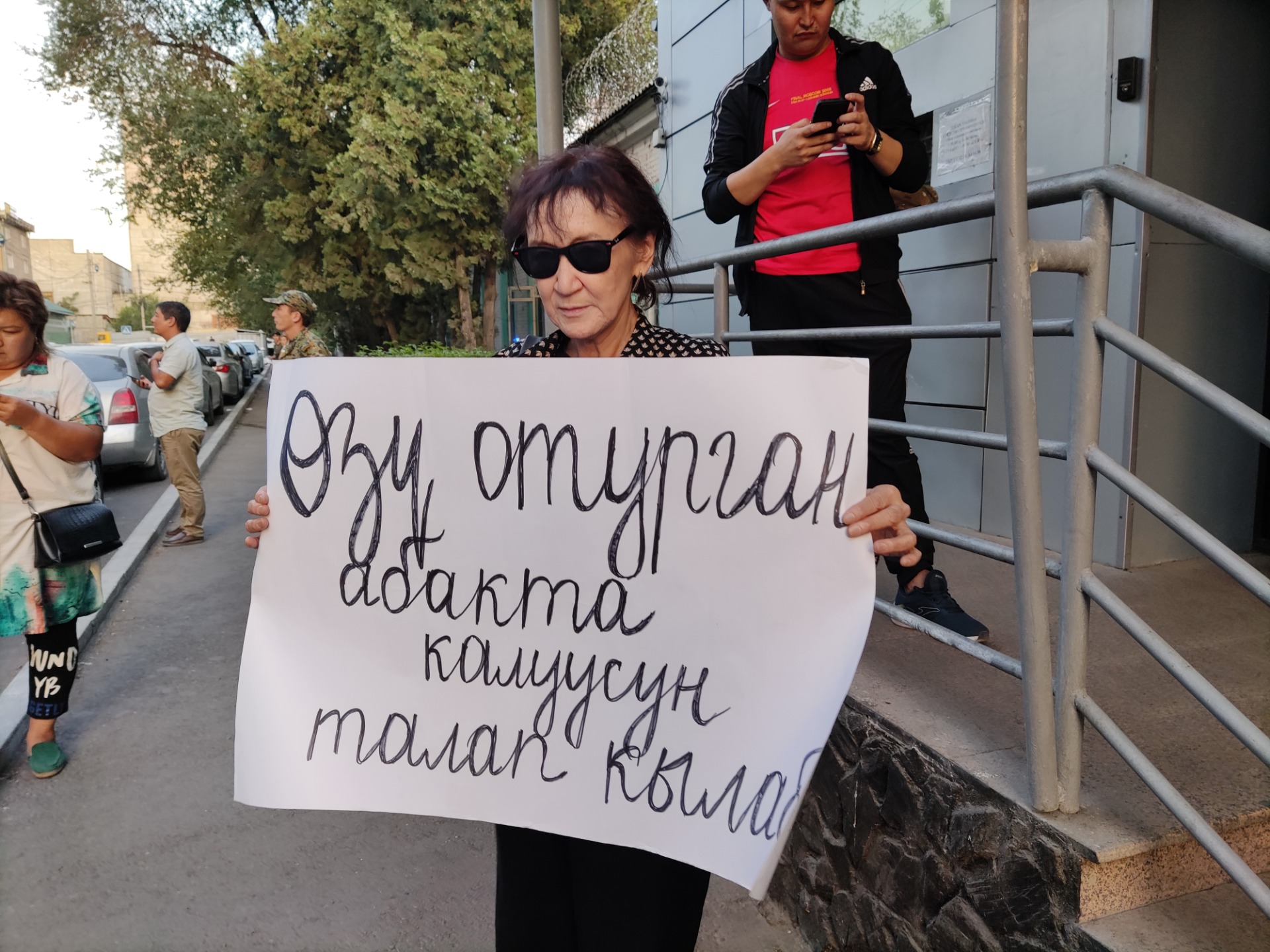 Около следственного изолятора собрались около 30 родственников осужденного. Они требуют, чтобы Улан Токтосунов отбывал наказание в СИЗО города Нарын.