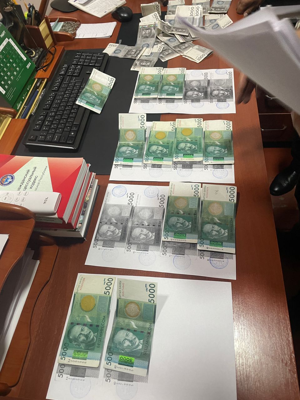 По результатам проведенных мероприятий судья Московского районного суда Б.Т.К. 5 марта 2024 года пойман с поличным при получении от посредника, который является работником аппарата суда К.А.Д., денежных средств в виде взятки в сумме $1,5 тысячи за положительное решение об условном-досрочном освобождении.