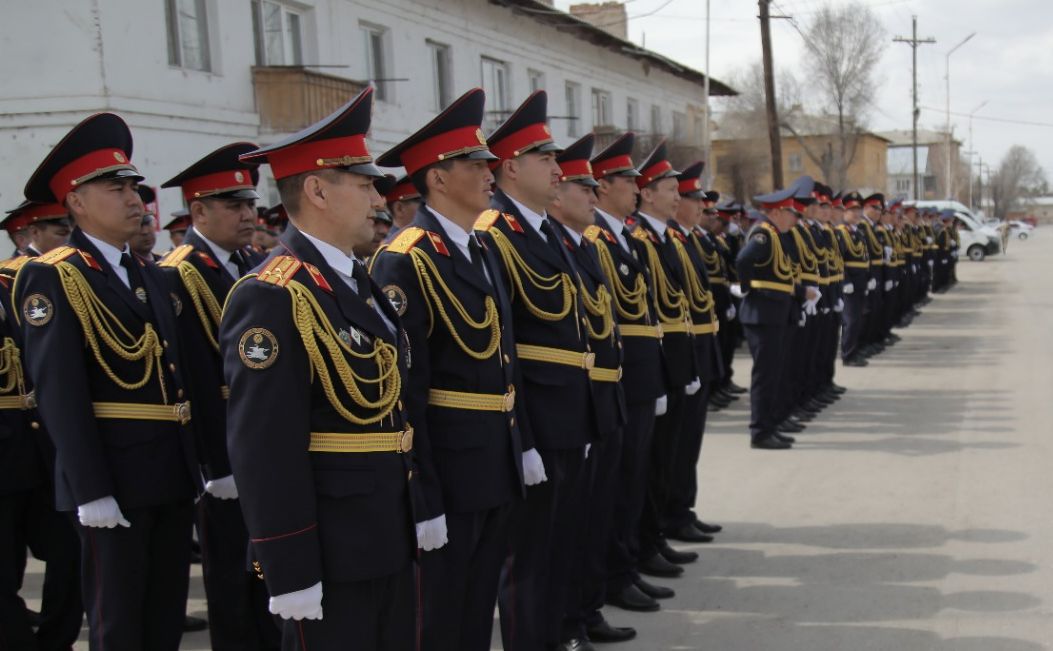 После заместитель министра Октябрь Урмамбетов провел строевой смотр парадной форменной одежды нового образца и проверил готовность к прохождению торжественным маршем на мероприятии, приуроченном к 100-летию со дня образования кыргызской милиции.