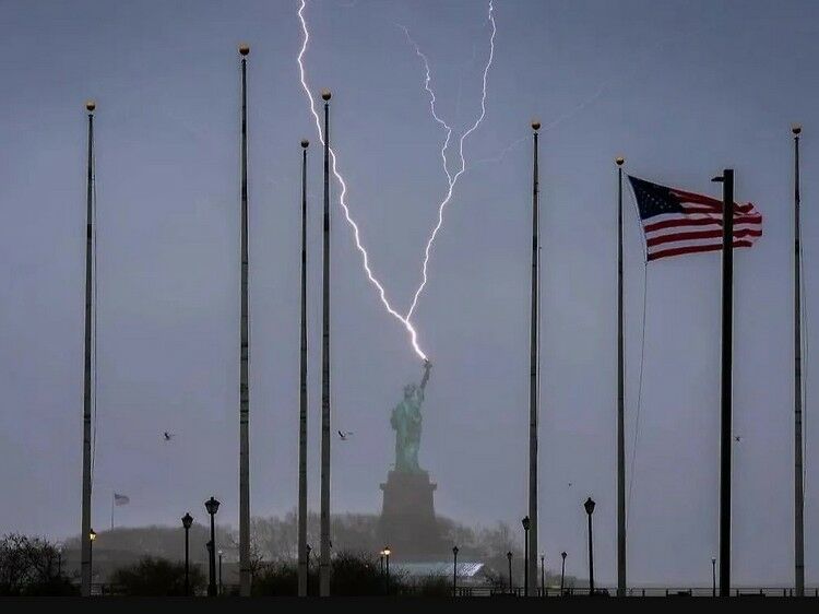 Мощный разряд молнии поразил Статую Свободы в Нью-Йорке. Удар пришелся прямо в факел — в соцсетях разошлись редкие кадры. Сам объект не пострадал, сообщили РИА Новости в пресс-службе управления парков города.