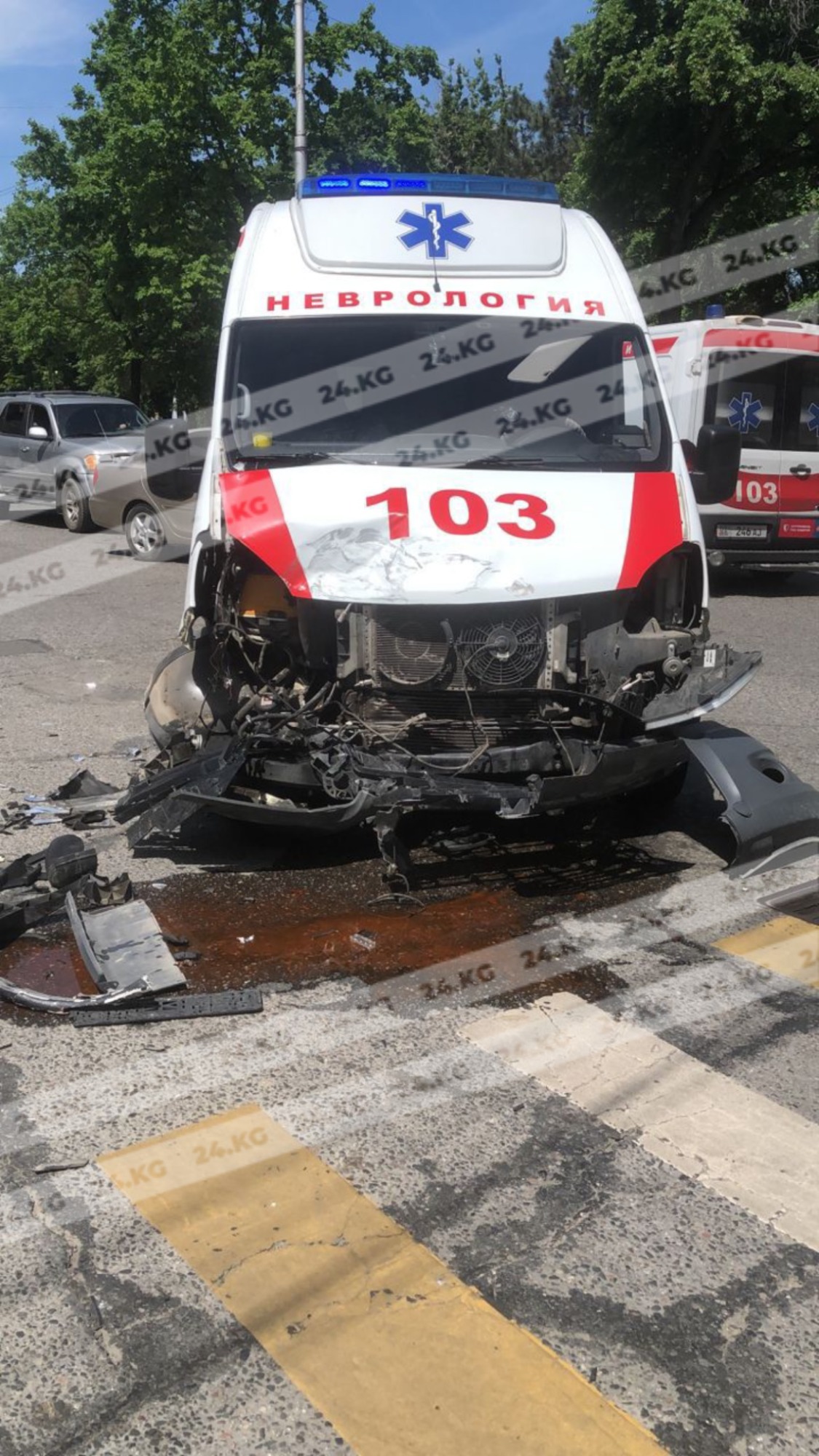 «ДТП произошло сегодня, 8 мая, примерно в 11.20. Карета скорой помощи ехала по проспекту Чуй в восточном направлении. В этот момент внедорожник, ехавший в западном направлении, поворачивал на юг по Тыныстанова и столкнулся с медиками», — добавил Исаев.