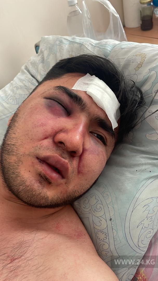 На кадрах, запечатленных на камеру видеонаблюдения, видно, как Рыскелди Нурлан уулу избивают двое мужчин. Его другу не дают возможности вмешаться и помочь. Пострадавший госпитализирован в больницу.