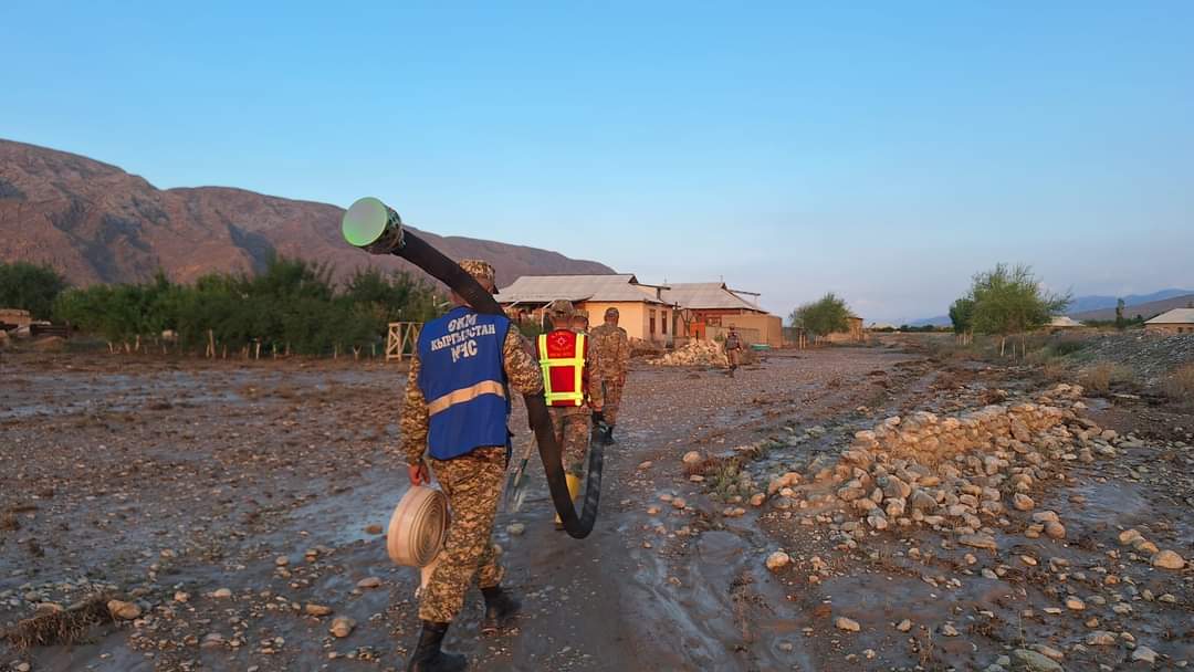 Для ликвидации последствий стихийных бедствий сегодня на участки Аэропорт и Орукзар в селе Ак-Татыр направлены 121 спасатель, 14 единиц техники и семь мотопомп.