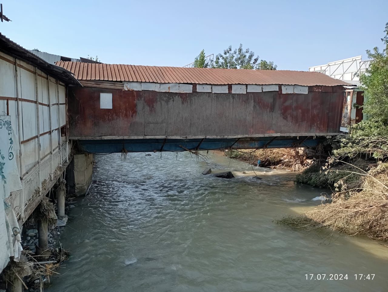 По ее данным, надзорный орган Оша установил, что на улицах Кара-Суйской и Базарной в водоохранной зоне реки Ак-Бууры без разрешительных архитектурных документов самовольно построены десять пешеходных мостов и торговые точки.