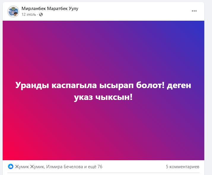Активист проживает в Чуйской области. Однако представившийся следователем ОВД города Каракол Ишенов отметил, что уголовное дело возбудили в Иссык-Кульской области по факту экстремизма на основе публикаций активиста в Facebook. Есть постановление суда о проведении обыска.