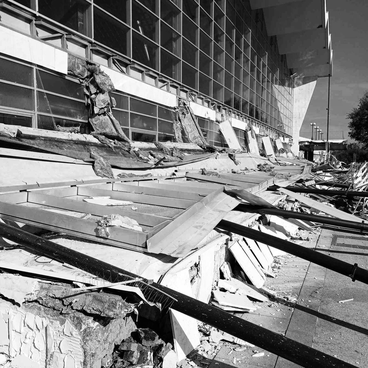 Отмечается, что под козырьком находились скамейки, и в момент обрушения на них сидело множество людей. Причины случившегося выясняются. Вокзал закрыт.