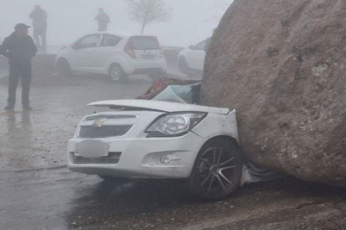 Уточняется, что огромный валун, сорвавшийся с горы, упал на автомобиль Cobalt на автодороге М-39 Ташкент — Термез на перевале Тахтакарача в Китабском районе Кашкадарьинской области.