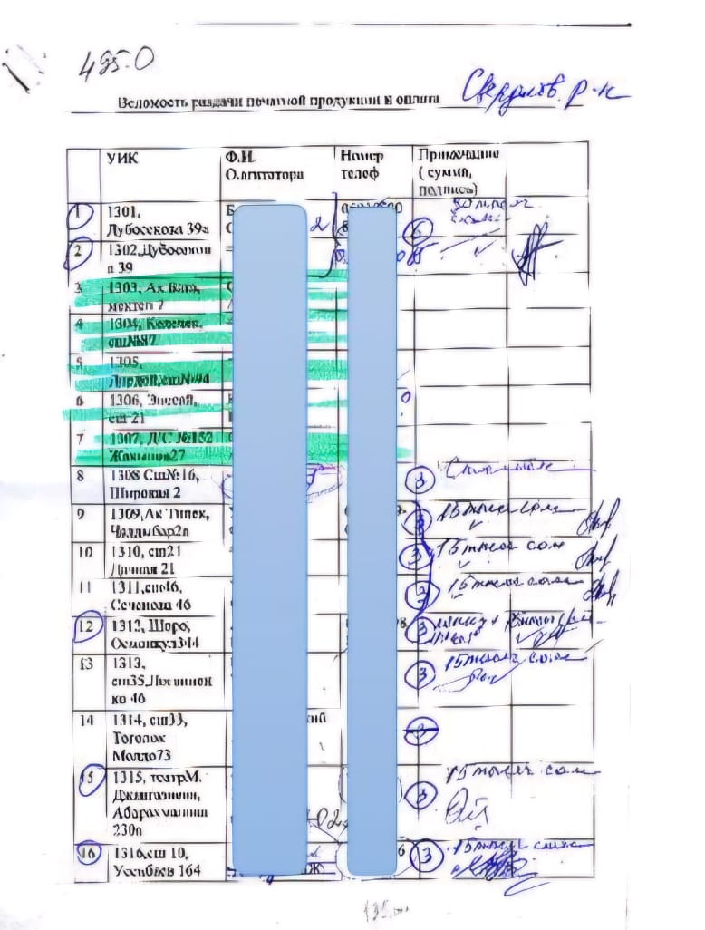 Доводы подтвердились изъятыми во время обыска в штабе документами, где гражданка Т.Р. пыталась уничтожить ведомости о раздаче от 15 до 30 тысяч сомов более чем 40 лицам для подкупа голосов.