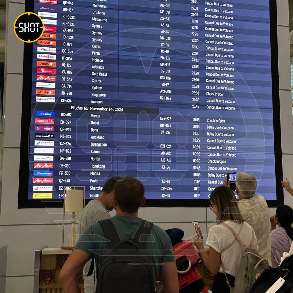 Тысячи туристов застряли на Бали из-за извержения вулкана. Онлайн-табло вылета/прилета международного аэропорта Денпасара показывает, что у десятка рейсов стоит пометка «отменен из-за вулкана». Тысячи туристов вынужденно застряли на Бали и теперь не могут вернуться домой.