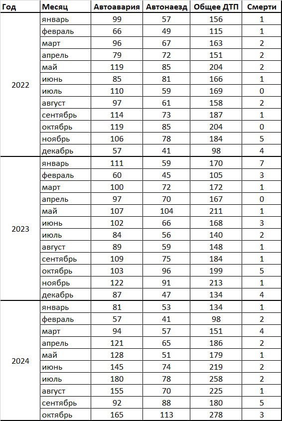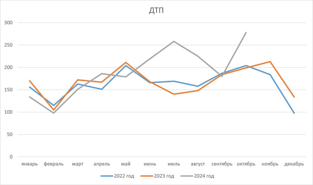 Медик привел в пример 2022-й и 2023 годы. Согласно его диаграмме, в 2024 году резкое увеличение количества ДТП пришлось на летний период и на начало октября. Егор Борисов добавил, что рост этот обусловлен именно самокатами и мопедами.