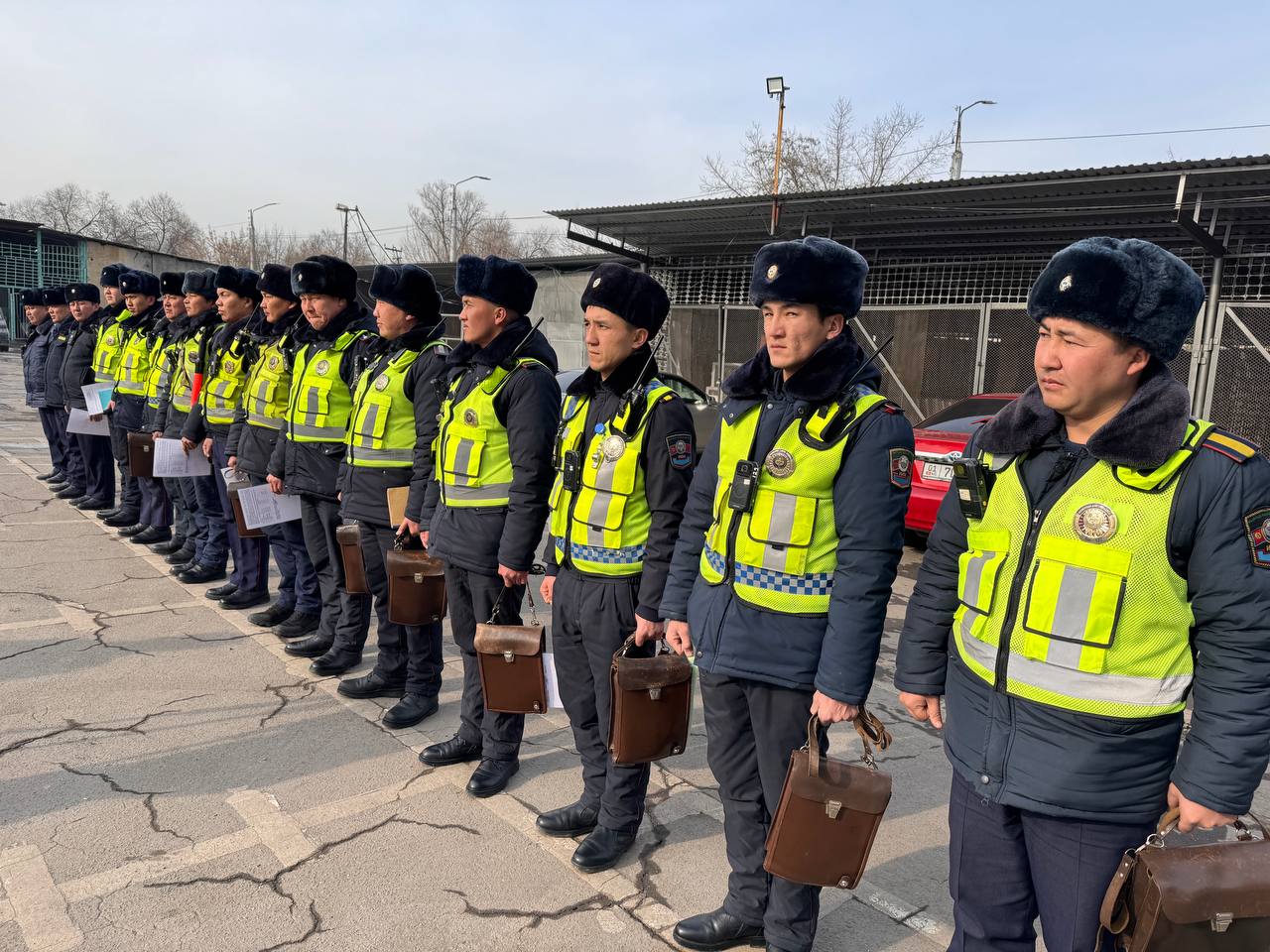 Сотрудники Патрульной службы милиции Бишкека проводят рейдовое мероприятие под названием «Пешеход». Правоохранители останавливают граждан, которые перебегают проезжую часть в неположенных местах. Согласно Кодексу о правонарушениях КР, таких нарушителей штрафуют на 1 тысячу сомов.