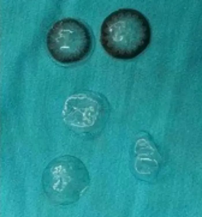 В ходе операции, когда пациентке вводили жир в область глазницы, оттуда выпало пять (!) контактных линз. Женщина удивилась не меньше врачей. Она была уверена, что регулярно теряет их уже несколько месяцев и не знала, что все это время они были в глазу. Никакого дискомфорта она не испытывала.