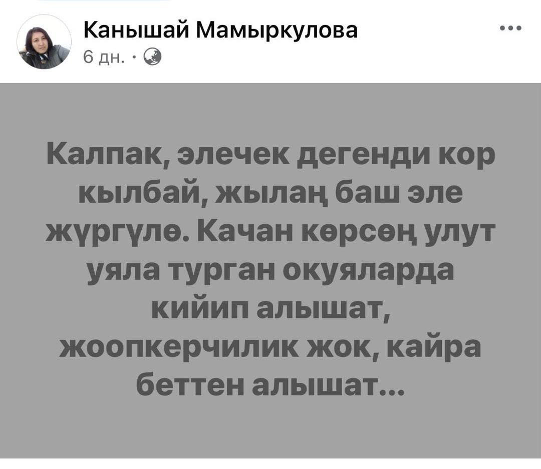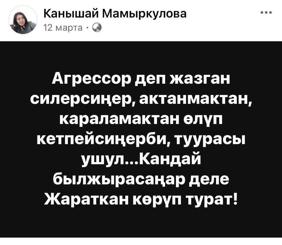 По версии следствия, Канышай Мамыркулова распространяла ложную информацию о кыргызско-таджикской границе, что могло привести к дестабилизации ситуации в стране.