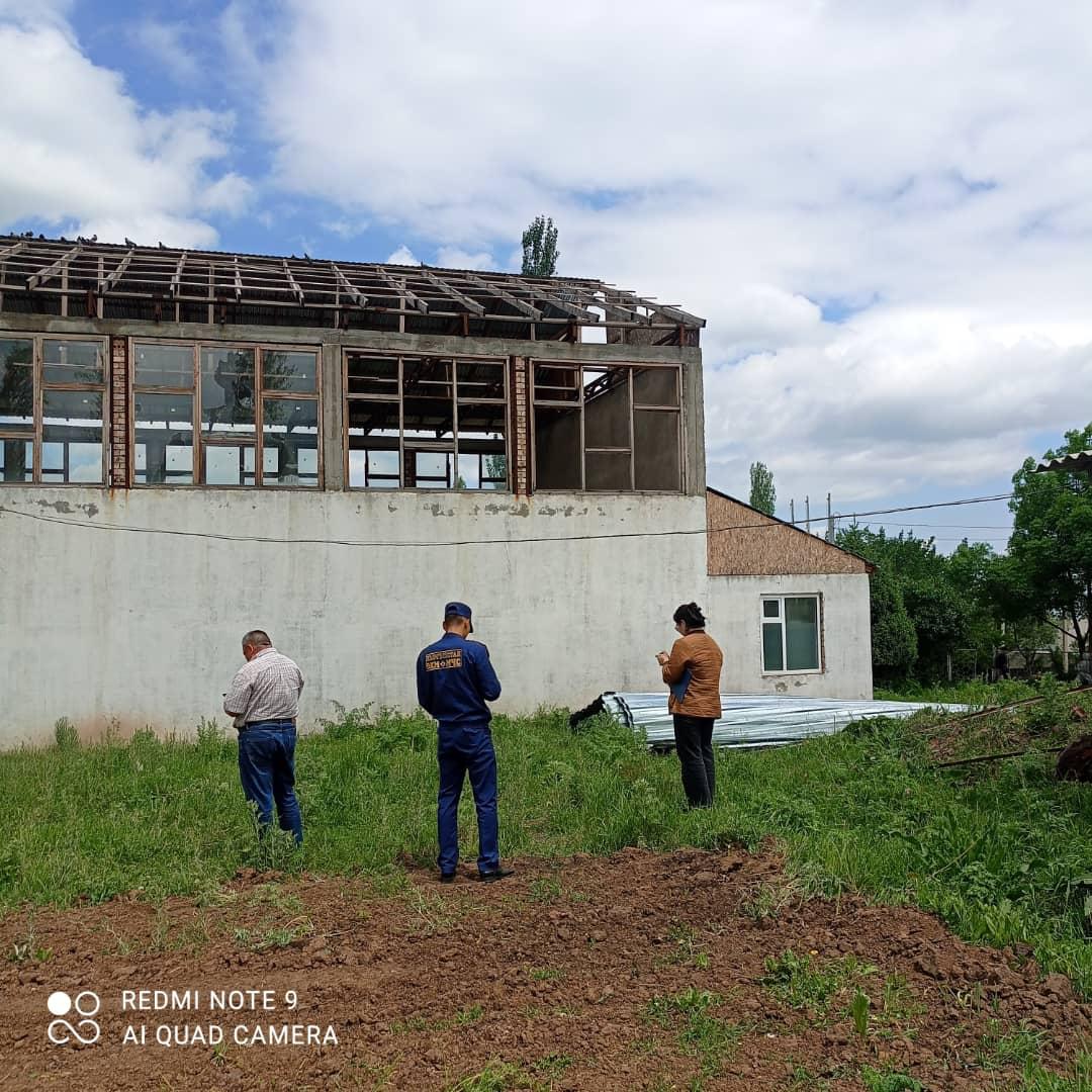 - в селе Жогорку Ичке-Суу на улице Алыбаева с частного жилого дома сорвало 40 квадратных метров кровли;