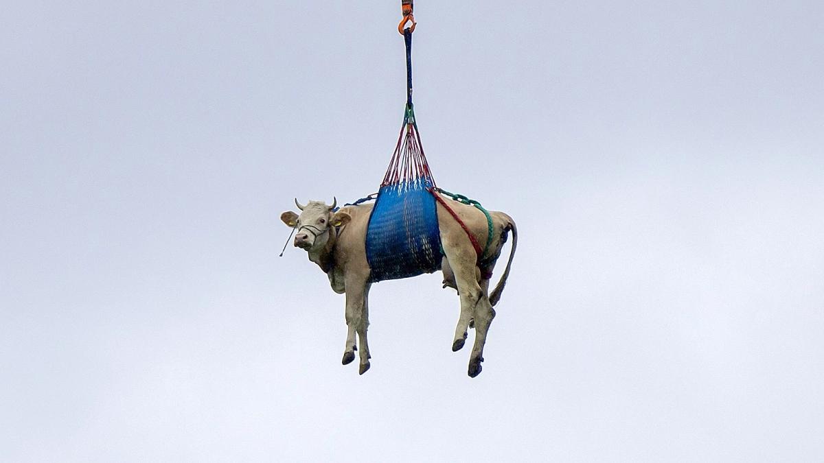 В Швейцарии спасатели эвакуировали корову на вертолете из-за угрозы оползня. Об этом сообщает Associated Press.