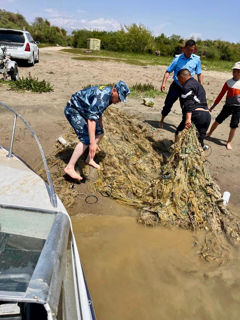 С начала мая из озера изъяли 138 синтетических браконьерских сетей общей площадью 13 тысяч 800 квадратных метров. Кроме того, у браконьеров обнаружили 71 особь рыбы различных видов.