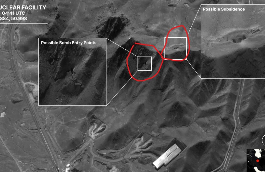 Появились первые спутниковые снимки ядерного центра в Фордо. На изображениях видны дыры в горном массиве, где расположен объект.