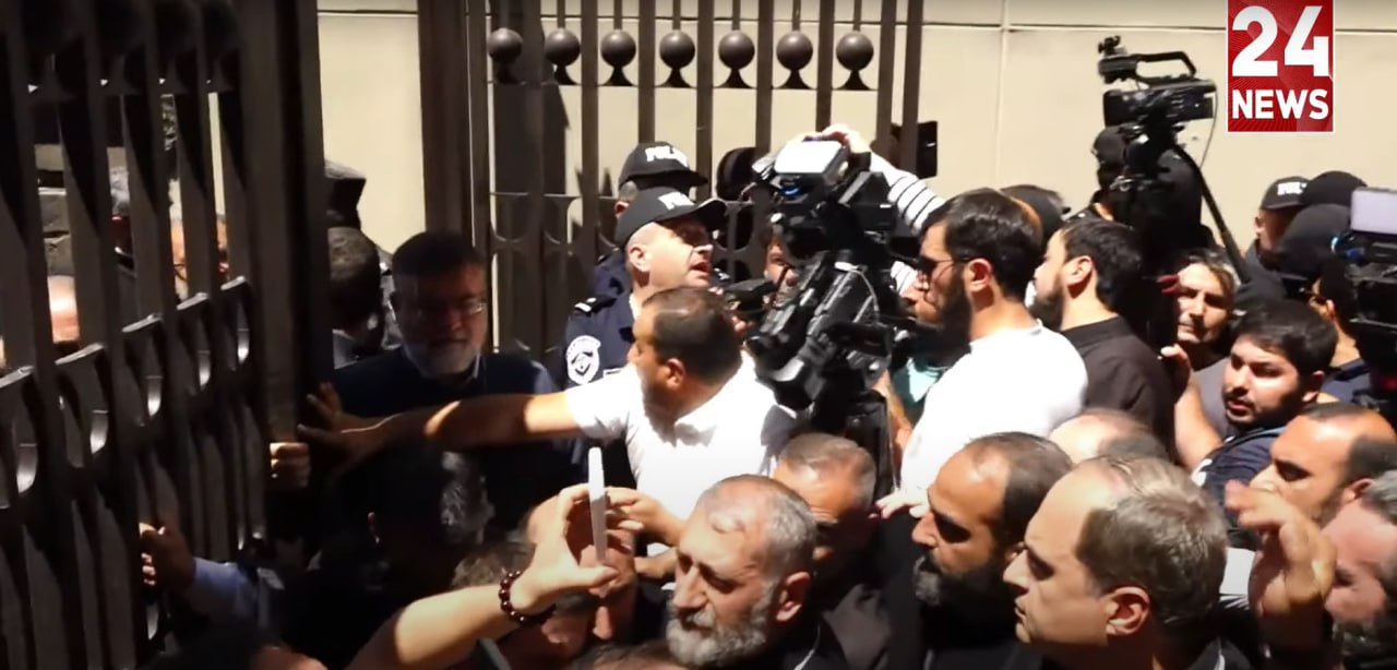 Полиция и сотрудники Службы национальной безопасности пришли в монастырский комплекс (это самый важный для армян духовный и административный центр Апостольской церкви), однако священнослужители и прихожане не давали им войти, завязалась потасовка.