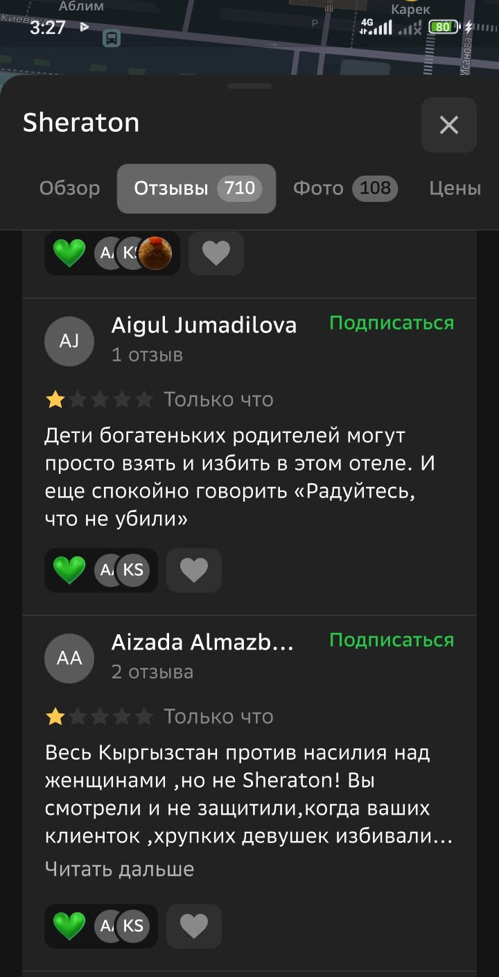 Пользователи интернета массово оставляют гневные комментарии на платформе 2GIS в адрес отеля Sheraton Bishkek после драки в ночь на 30 июня. За несколько часов количество отрицательных отзывов резко возросло.