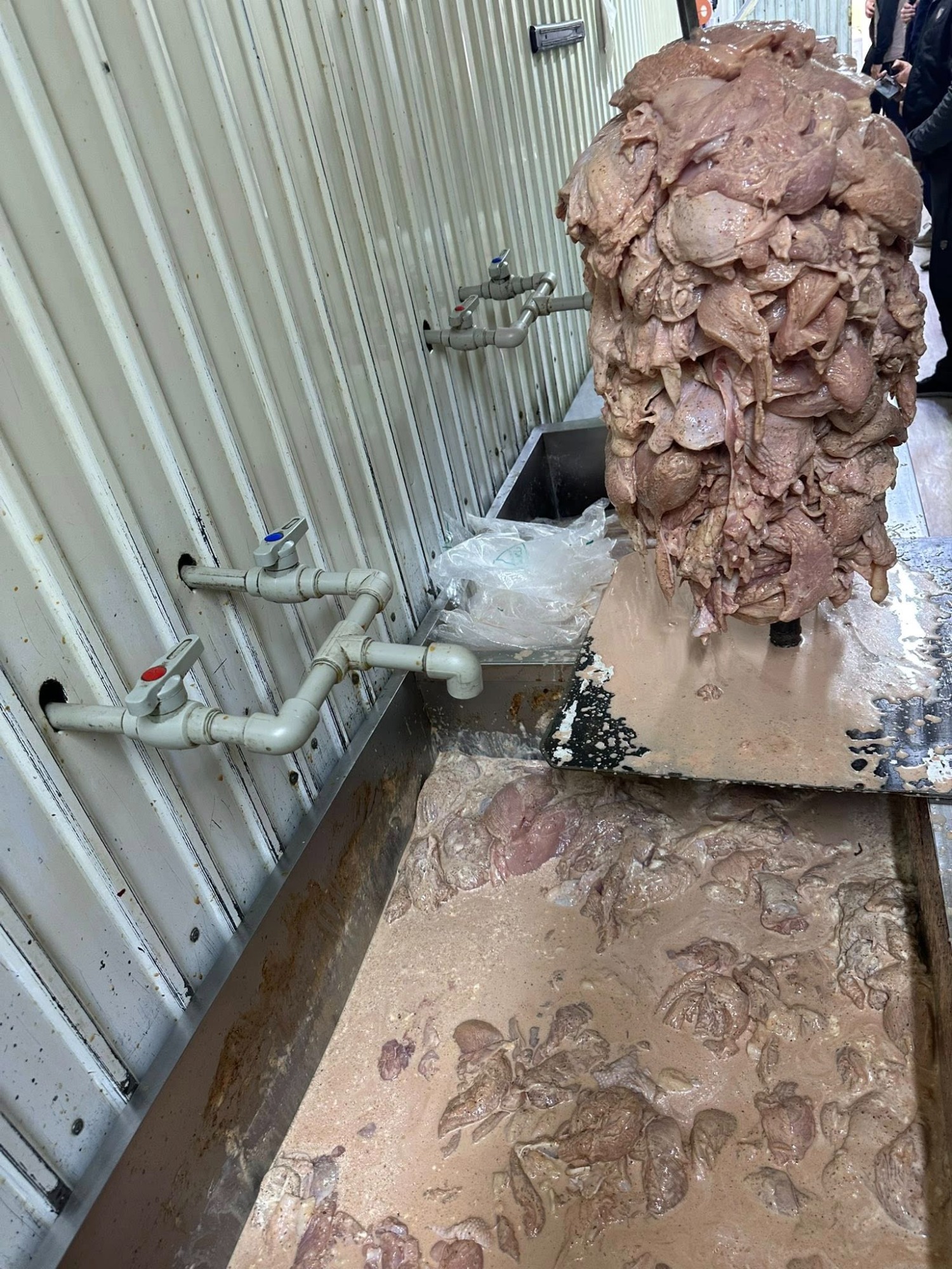 «В Lavash center, где мы, облизываясь, стояли в огромной очереди, чтобы поесть, вот так готовят шаурму. Сегодня во время утреннего рейда мы вышли отсюда, проследив за следами сточных вод, полных отходов. В результате соответствующие службы прекратили подачу воды и электроэнергии! Времена, когда деньги важнее здоровья людей», — отметил он.