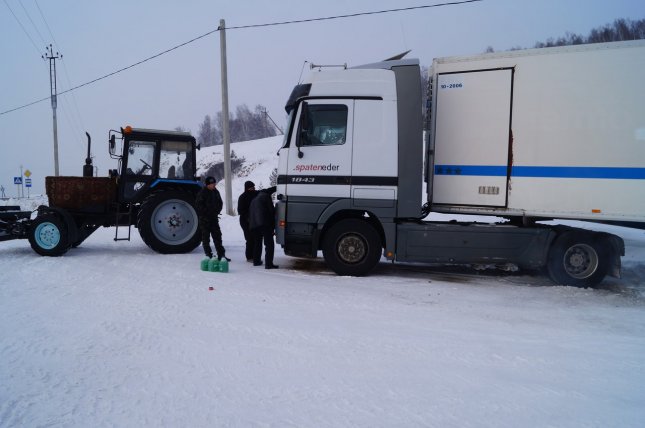 Инспекторы ДПС отогрели мужчин в салоне патрульного автомобиля. После этого свозили до ближайшего магазина, где водитель приобрел антифриз. Полицейские помогли частично устранить неисправности и завести двигатель грузовика, нашли и трактор, с помощью которого автомобиль расцепили с полуприцепом. После водитель смог отогнать фуру к месту ремонта.