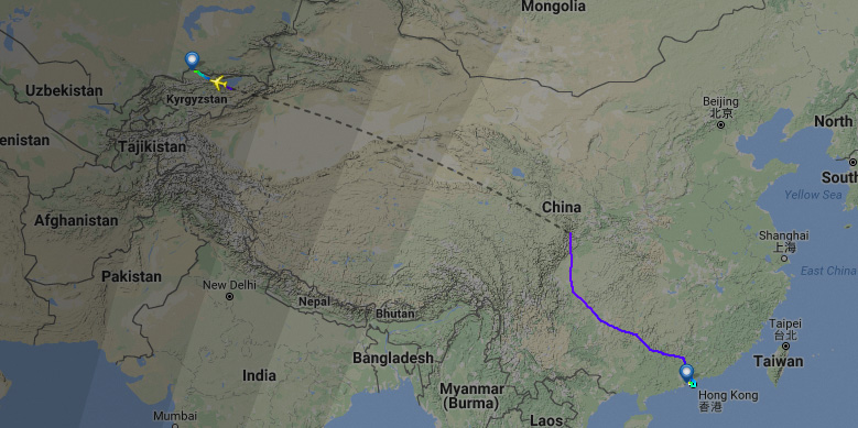 На сайте FlightRadar размещена карта полета грузового турецкого самолета, потерпевшего сегодня крушение в районе аэропорта «Манас» в Бишкеке. ЧП произошло в 7.31 утра.