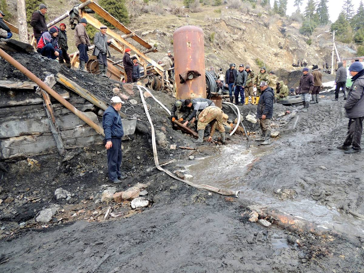 «В данное время здесь работает много людей, местные жители и сотрудники областных и районных структур, подразделение МЧС по Иссык-Кульской области и сотрудники Службы гражданской защиты Ак-Суйского района. Они ведрами выносят воду из шахты. Компания «Кумтор» направила группу специалистов с двумя насосами для откачки воды. Всю ночь работали. В шахте много грязи, смешанной с водой. Но мы надеемся, что в шахте могут быть сухие места, где шахтеры ожидают помощи», — сказала она.