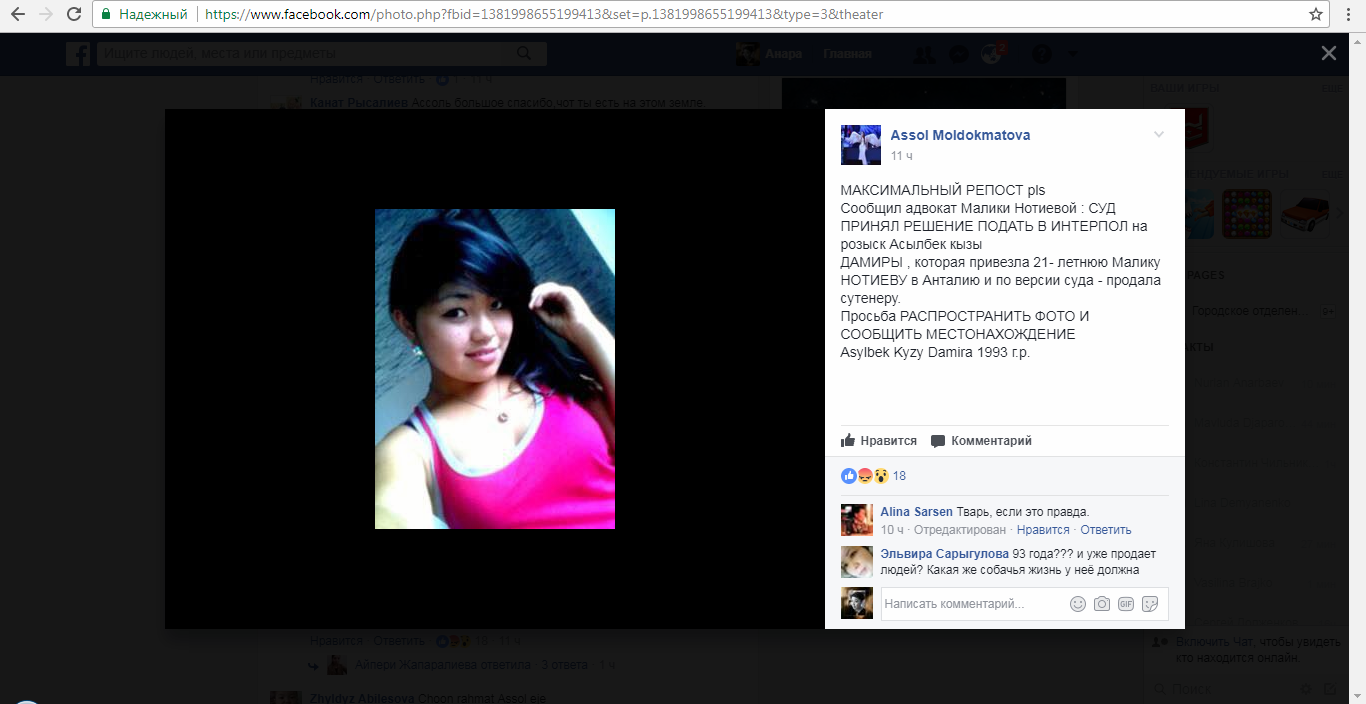 «Заоблачные дали ей нарисовала подруга Дамира, которая и продала ее сутенеру. После происшествия Дамира исчезает. Многие поговаривают, что она в Москве. В тот вечер между девушками была переписка. Прокурор озвучил и показал ее. Малика Нотиева даже не подозревала о злом умысле подруги», — сообщила телеведущая.