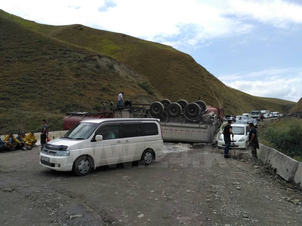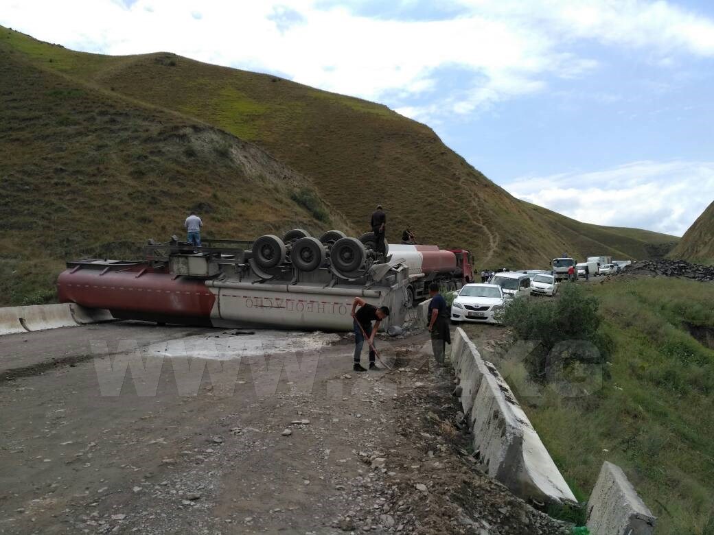 В районе перевала Кок-Бей на дороге Бишкек — Ош перевернулся бензовоз. В результате образовалась многокилометровая пробка.