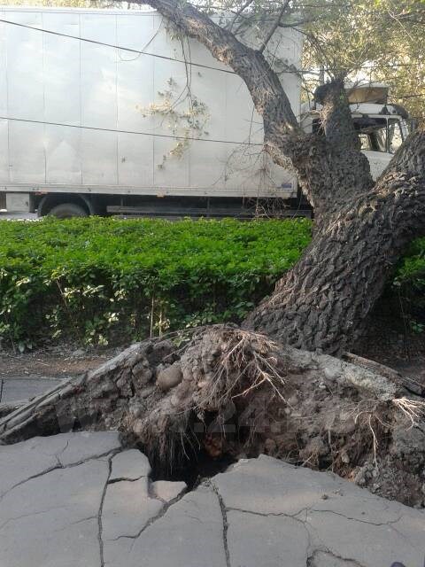 На пересечении проспекта Манаса и улицы Киевской на грузовую машину упало дерево. Жертв нет. На место происшествия прибыли сотрудники милиции. Вызваны работники «Зеленстроя».