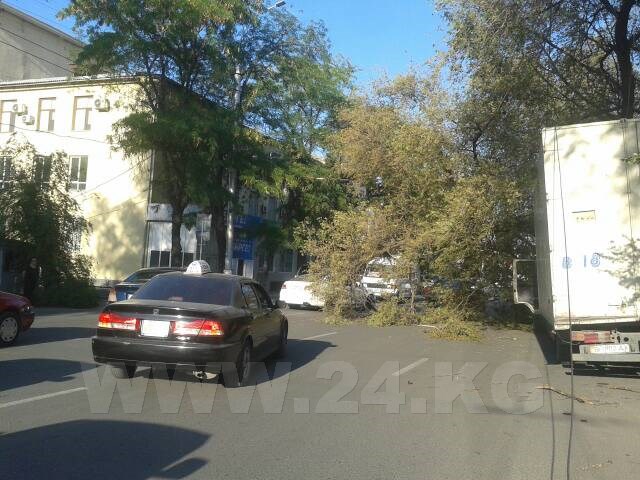 На пересечении проспекта Манаса и улицы Киевской на грузовик упало дерево