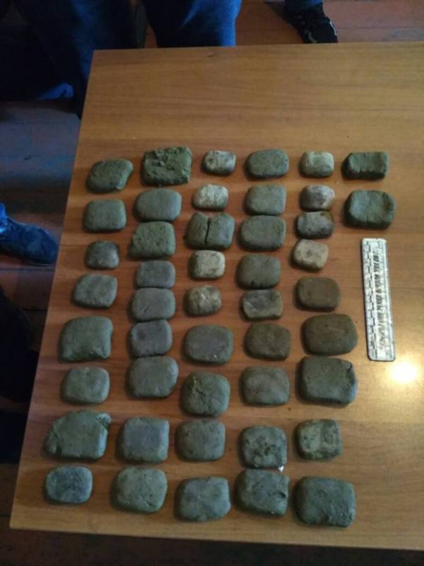 «В ходе осмотра обнаружено и изъято 53 литра жидкости со специфическим запахом наркотического вещества (общим весом 58,1 килограмма), 41,5 килограмма марихуаны, а также 1,6 килограмма гашиша, разделанного в 47 брикетов», - говорится в сообщении.