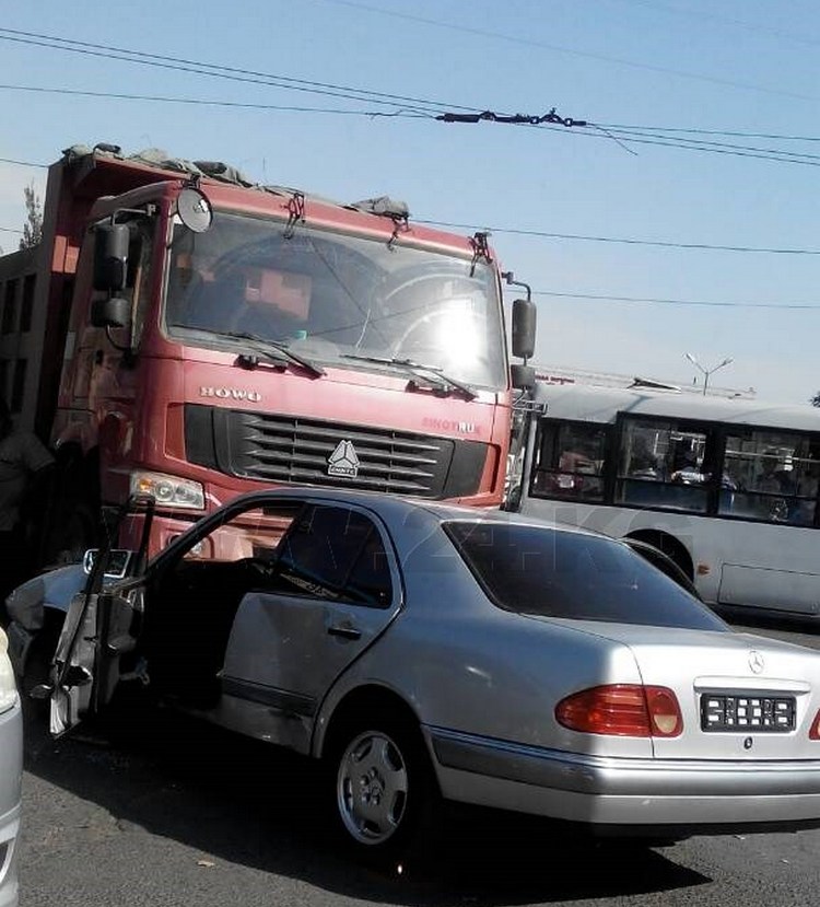 По их данным, ДТП произошло на пересечении улиц Алма-Атинской и проспекта Чуй. Автомобиль марки «Мерседес» влетел под грузовой «Хово». Еще несколько машин стоят на обочине. Сотрудников УПМ на месте аварии пока нет.