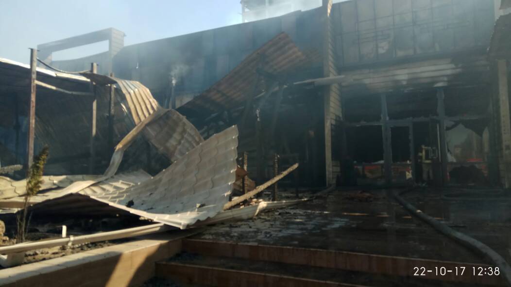 По предварительным данным, огонь перекинулся на кафе «Корчма», «Ганбей» и «Марио».